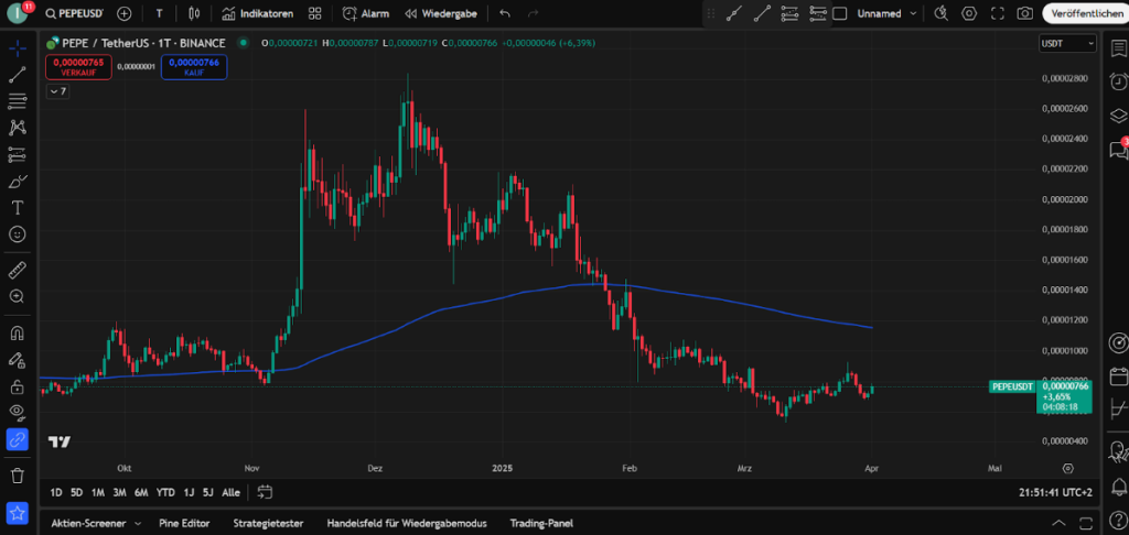 ბიტკოინისა და მრავალი სხვა დიდი მონეტისგან განსხვავებით, $PEPE-მ ყველა დროის მაქსიმუმი მიმდინარე წლის 20 იანვარს კი არ დააფიქსირა, არამედ უკვე 9 დეკემბერს. მას შემდეგ $PEPE-ს ინვესტორებმა 72 პროცენტზე მეტი ზარალი განიცადეს. თუმცა, სხვა მსხვილი მონეტების უმეტესობის მსგავსად, $PEPE-მ ასევე 11 მარტს დააფიქსირა თავისი ყველაზე დაბალი წერტილი და მას შემდეგ კვლავ ზევით მოძრაობს. და ეს არცთუ ისე ცოტაა, რადგან $PEPE ამჟამად თითქმის 50 პროცენტით გაიზარდა.